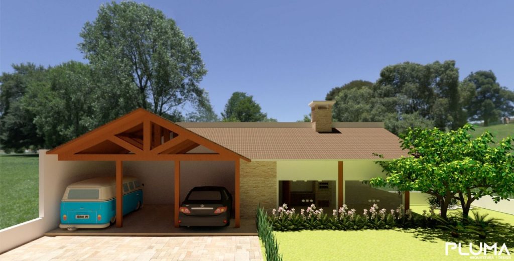 Foi criado um projeto de arquitetura na cidade de Santa Clara do Sul/RS, em uma residência, onde ouve a necessidade da criação de uma garagem e uma área de lazer completa, com churrasqueira, reservatório de captação de água pluvial, banheiro, dispensa e salão de festa.
